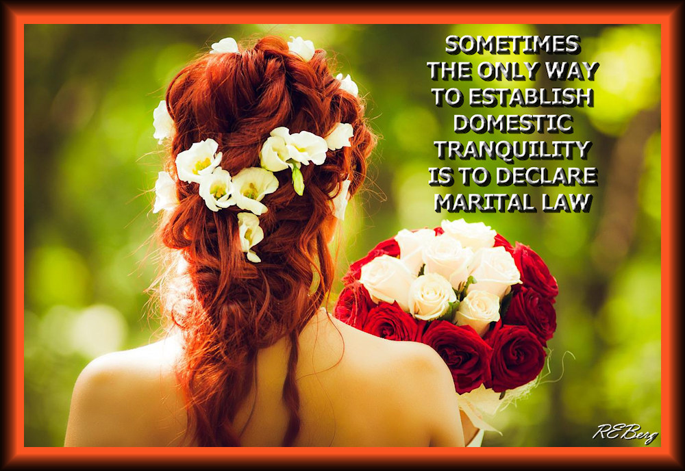 Martial Art Image August 22, 2023 R.E. Berg humor, joke, meme, Punishingly Punny, Rocky Relationships declare, domestic, extablish, law, marital, martial, tranquility