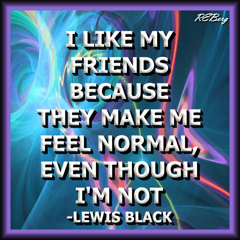 Abnormally Likable Image August 4, 2024 R.E. Berg humor, joke, meme, Mental Gymnastics, Quote Quotient, Random Observations because, feel, friends, Lewis Black, like, make, me, normal