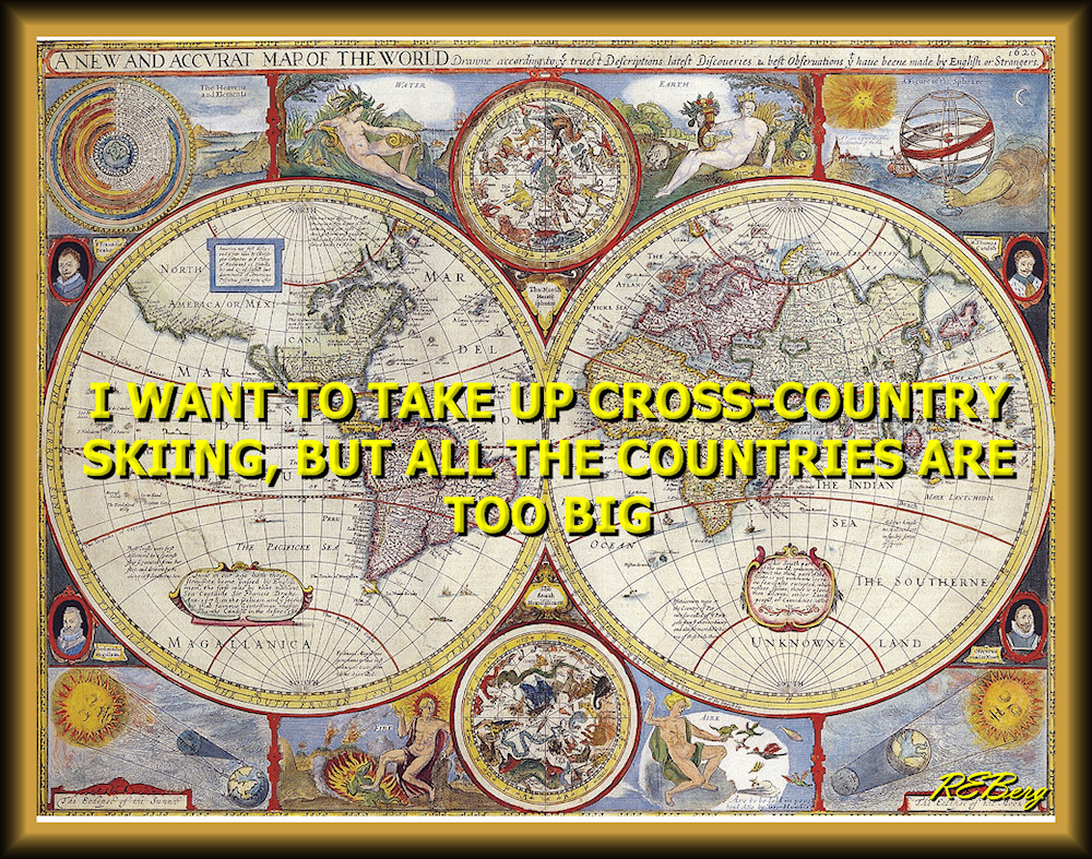 Borderline Barricade Image July 5, 2023 R.E. Berg humor, Irrational Recreation, joke, meme, Punishingly Punny countries, cross-country, limits, size, skiing, too big