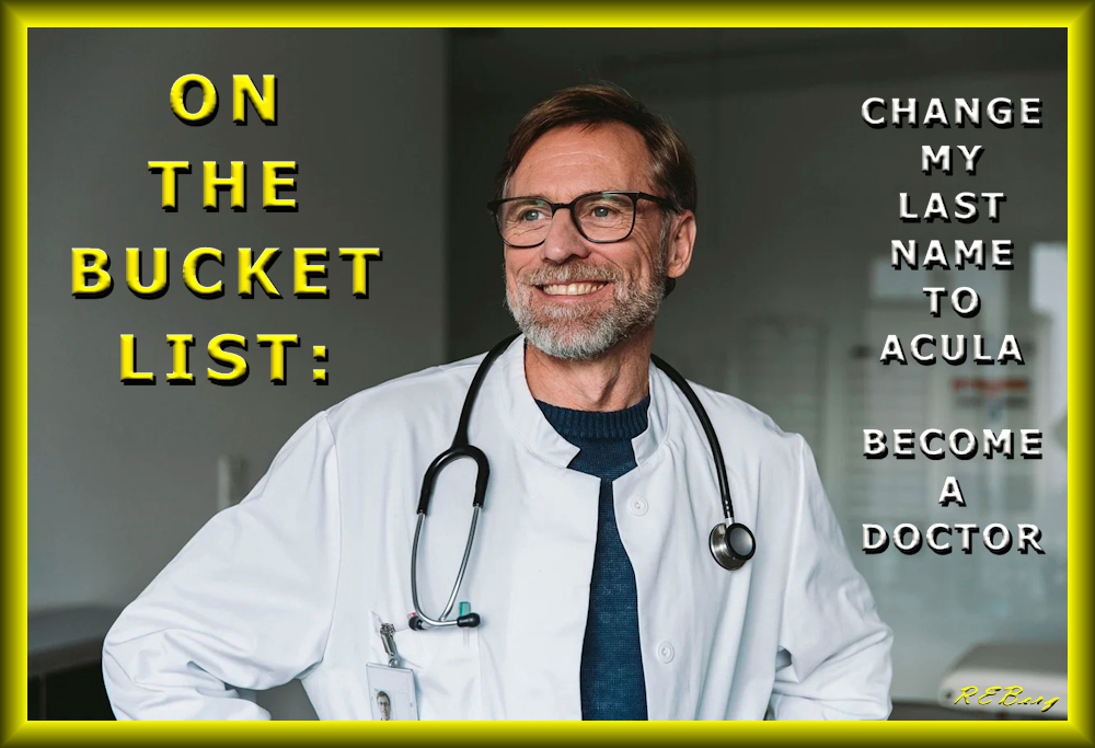 Bloodthirsty Surgeon Image January 22, 2023 R.E. Berg humor, joke, meme, Occupational Oddities, Punishingly Punny, Social Hostility Acula, bucket, doctor, Dr Acula, Dracula, list, rename