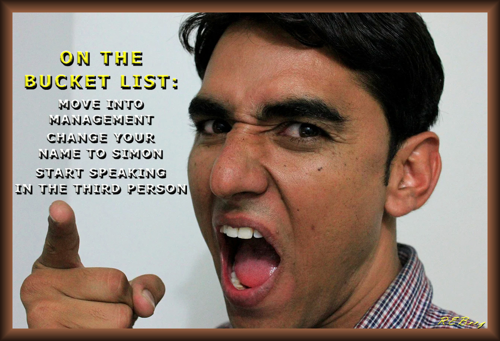 Detached Management Image January 23, 2023 R.E. Berg humor, joke, meme, Occupational Oddities, Social Hostility bucket, list, management, person, says, simon, third
