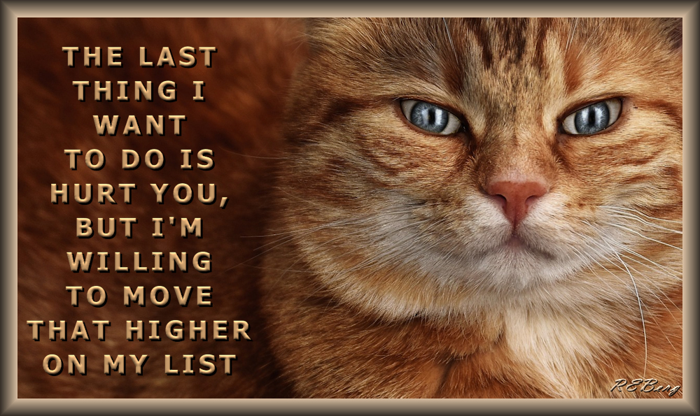 Advanceable Agenda Image March 21, 2023 R.E. Berg Companion Critters, Deadly Living, humor, joke, meme, Punishingly Punny, Social Hostility cat, higher, hurt, last thing, list, move