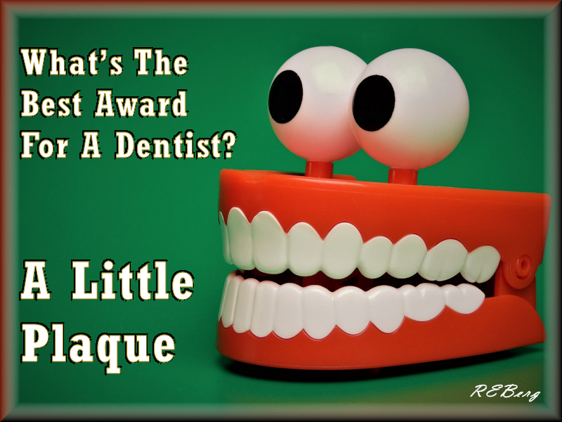 Crowning Achievement Image August 22, 2023 R.E. Berg humor, joke, meme, Occupational Oddities, Punishingly Punny award, best, dentist, dentures, little, plaque