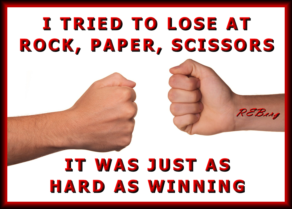 Even Odds Image January 12, 2023 R.E. Berg humor, joke, Marginal Entertainment, meme, Mental Gymnastics difficulty, game, lose, paper, rock, scissors, win