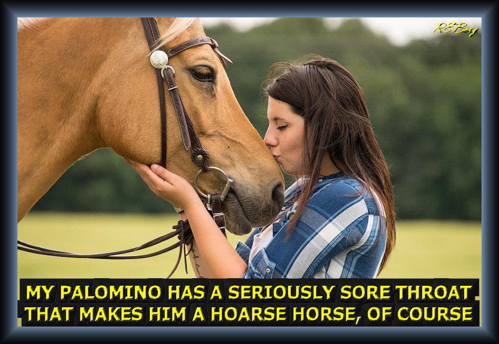 Neigh Nay Image September 28, 2023 R.E. Berg Companion Critters, humor, joke, meme, Punishingly Punny Too hoarse, horse, makes, Palomino, seriously, sore, throat