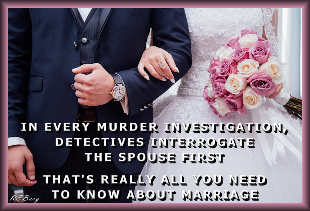 Marital Synopsis Image June 6, 2023June 6, 2023 R.E. Berg Deadly Living, humor, joke, meme, Random Observations, Rocky Relationships, Social Hostility, That's Living know, marriage, murder investigation, need, Person of Interest, prime suspect, spouse