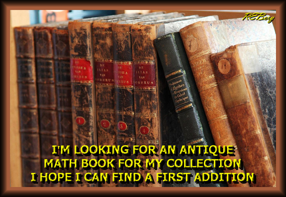 Time-Worn Tome Image September 17, 2023 R.E. Berg humor, joke, meme, Punishingly Punny Too, Ready Reading addition, antique, book, edition, find, first, hope, looking, math