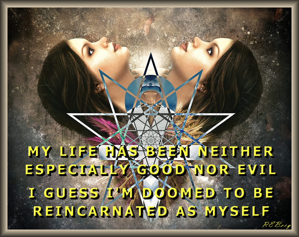 Nothing Ventured… Image May 9, 2023 R.E. Berg humor, Imaginary Reality, joke, meme, That's Living evil, good, middle, myself, neutrality, reincarnation, rerun