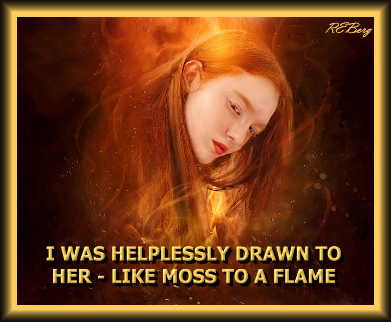 Fatal Infatuation Image August 3, 2023 R.E. Berg Deadly Living, humor, joke, meme, Punishingly Punny, Rocky Relationships attraction, drawn, flame, moss, moths, woman