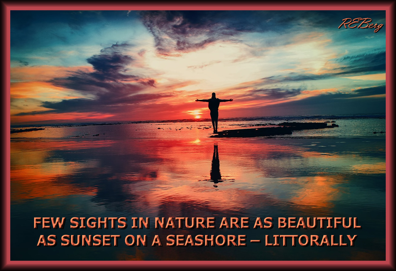Edge Of Night Image June 13, 2023 R.E. Berg humor, joke, meme, Punishingly Punny beautiful, literally, nature, seashore, sight, sunset