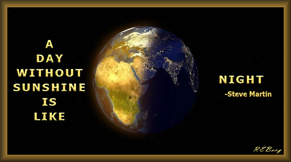 Illuminatory Opposites Image October 11, 2023 R.E. Berg humor, joke, meme, Punishingly Punny, Quote Quotient, Scientific Sensibility day, definition, Earth, night, Steve Martin, sunshine