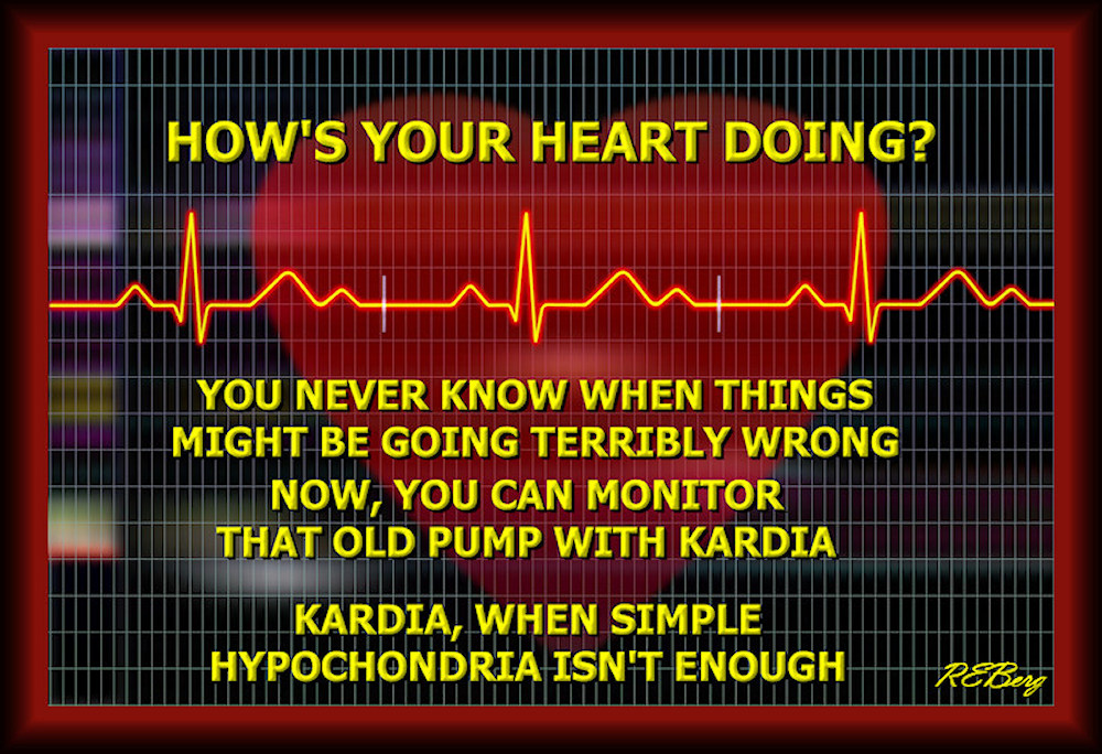 And The Beat Goes On Image March 10, 2024 R.E. Berg Fantasy Fitness, humor, joke, Lively Dying, meme, Mental Gymnastics, Random Observations, Social Hostility, That's Living going, heart, hypochondria, Kardia, know, might, monitor, old, pump, terribly, things, wrong