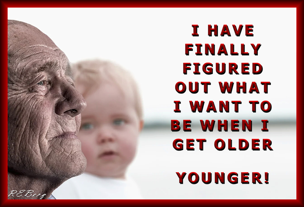 Rejuvenation Realization Image June 30, 2023 R.E. Berg Age Management, humor, Imaginary Reality, joke, meme, That's Living aspiration, determination, older, younger