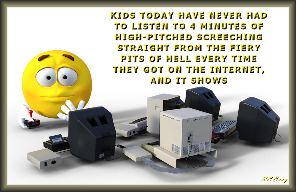 Banshee Connection Image October 9, 2023 R.E. Berg Age Management, humor, Irrational Recreation, joke, meme dial-up, high-pitched, internet, kids, modem, online, screeching, today