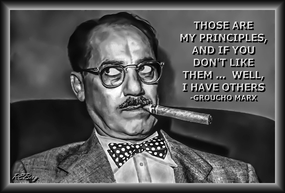 Politically Primed Image October 10, 2023 R.E. Berg humor, joke, meme, Political Potpourri, Quote Quotient Groucho Marx, like, others, principles
