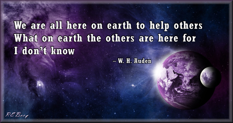 Perplexing Purpose Image May 20, 2023 R.E. Berg humor, joke, meme, Quote Quotient, Social Hostility Earth, helping others, here, paradox, purpose, unknown, W.H. Auden
