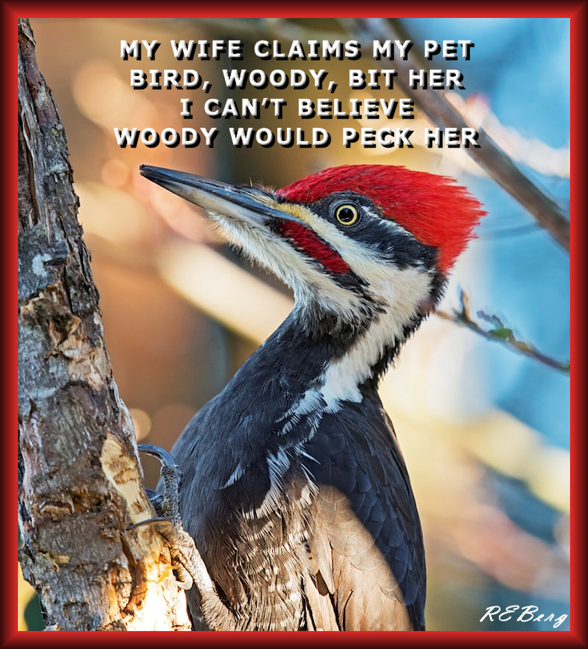 Impeccable Behavior Image April 18, 2023April 18, 2023 R.E. Berg Companion Critters, humor, joke, meme, Punishingly Punny, Rocky Relationships accusation, bird, bite, peck, pet, wife, Woody Woodpecker