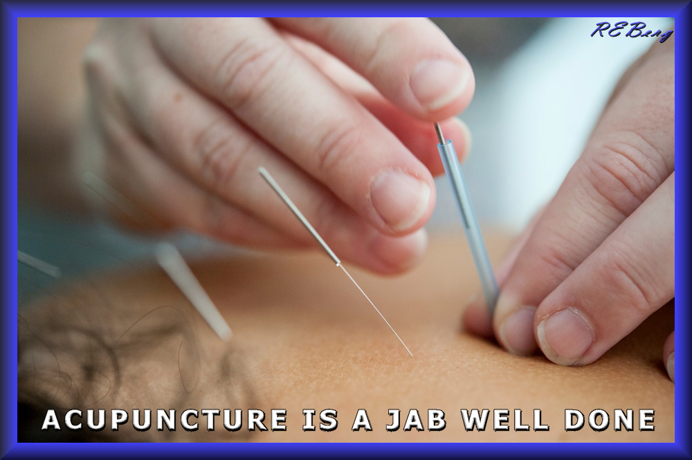 Pinpoint Precision Image July 29, 2023 R.E. Berg humor, joke, meme, Occupational Oddities, Punishingly Punny Too acupuncture, jab, job, pins