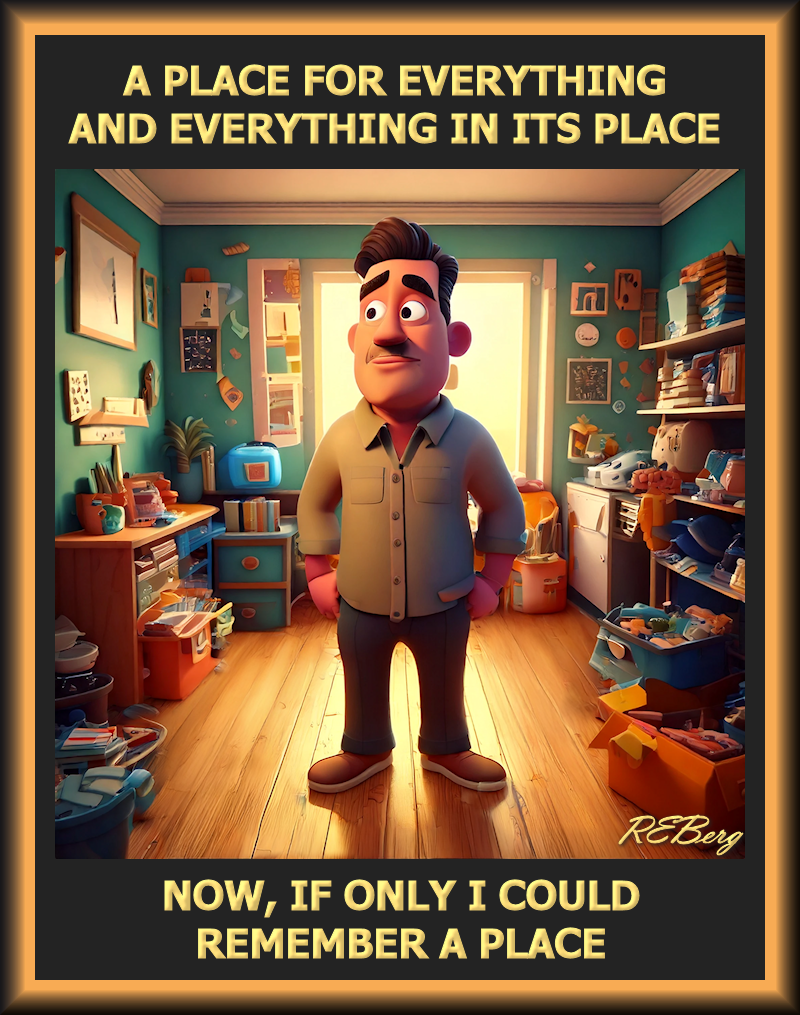 Placement Misplacement Image July 18, 2025July 18, 2025 R.E. Berg humor, Imaginary Reality, joke, Locational Logic, meme, Mental Gymnastics, Random Observations everything, if only I could remember, in its place, man, organization, place, room, storage