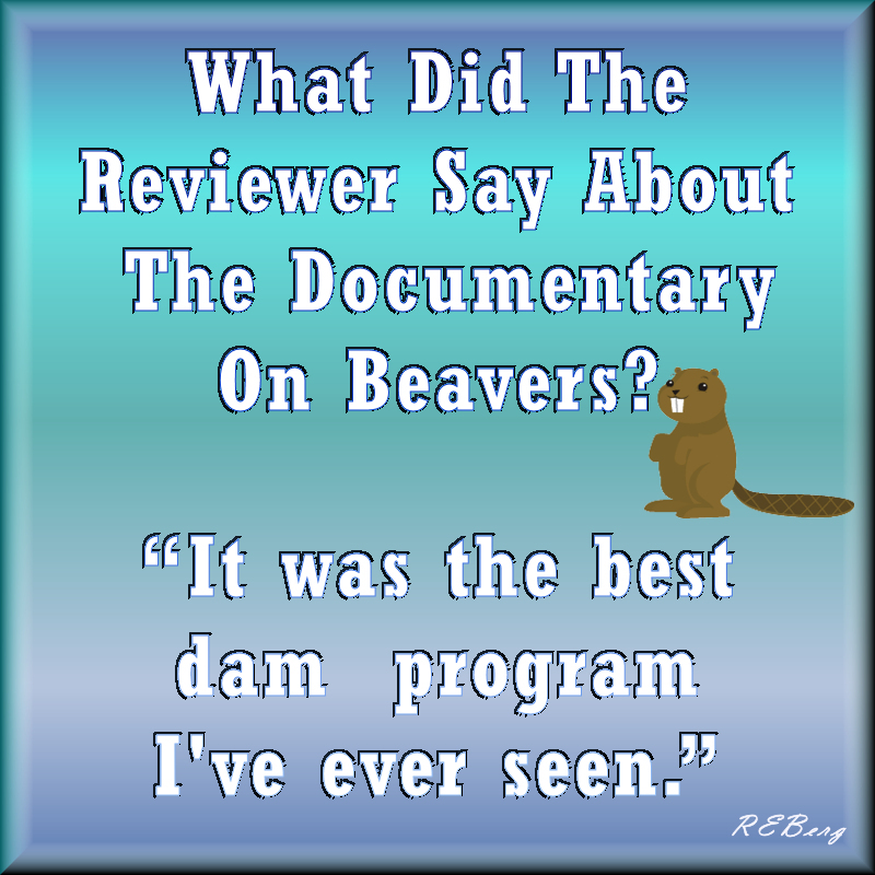 Leave It To Beaver Image September 20, 2023 R.E. Berg humor, joke, Marginal Entertainment, meme, Punishingly Punny beaver, best, dam, damn, documentary, program, review