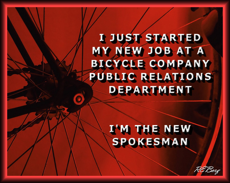 Spinmaster Image February 2, 2023 R.E. Berg humor, Irrational Recreation, joke, meme, Occupational Oddities, Punishingly Punny Too bicycle, company, job, public, relatiions, spokesman