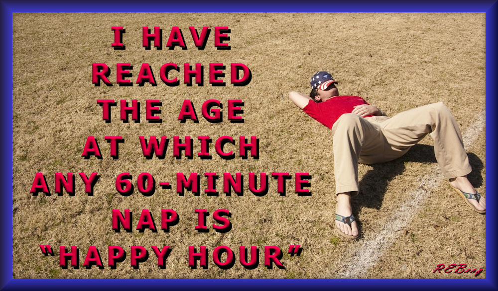 Anytime Napping Image May 16, 2023 R.E. Berg Age Management, humor, joke, meme 60, happy, hour, milestone, nap, reached