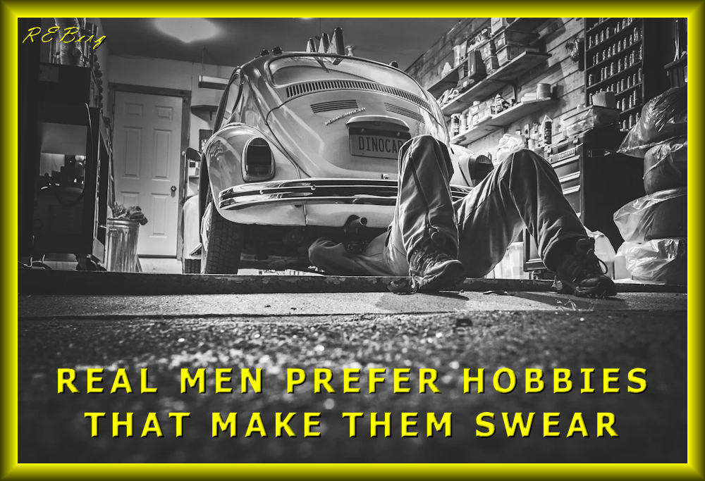 Profane Pastimes Image June 9, 2023 R.E. Berg humor, Irrational Recreation, joke, meme, Random Observations car, hobbies, maintenance, men, preferred, real, repairs, swear