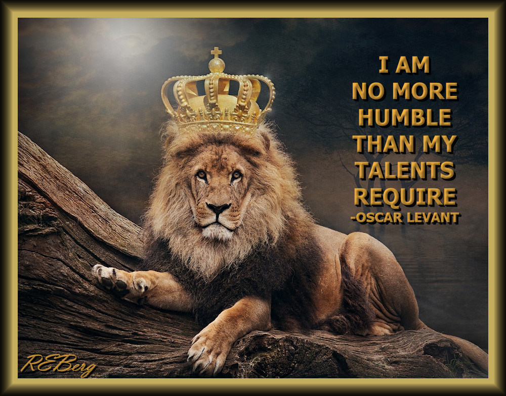 Royally Realistic Image November 26, 2023November 26, 2023 R.E. Berg humor, joke, meme, Quote Quotient, Random Observations crown, humble, lion, more, Oscar Levant, require, talents