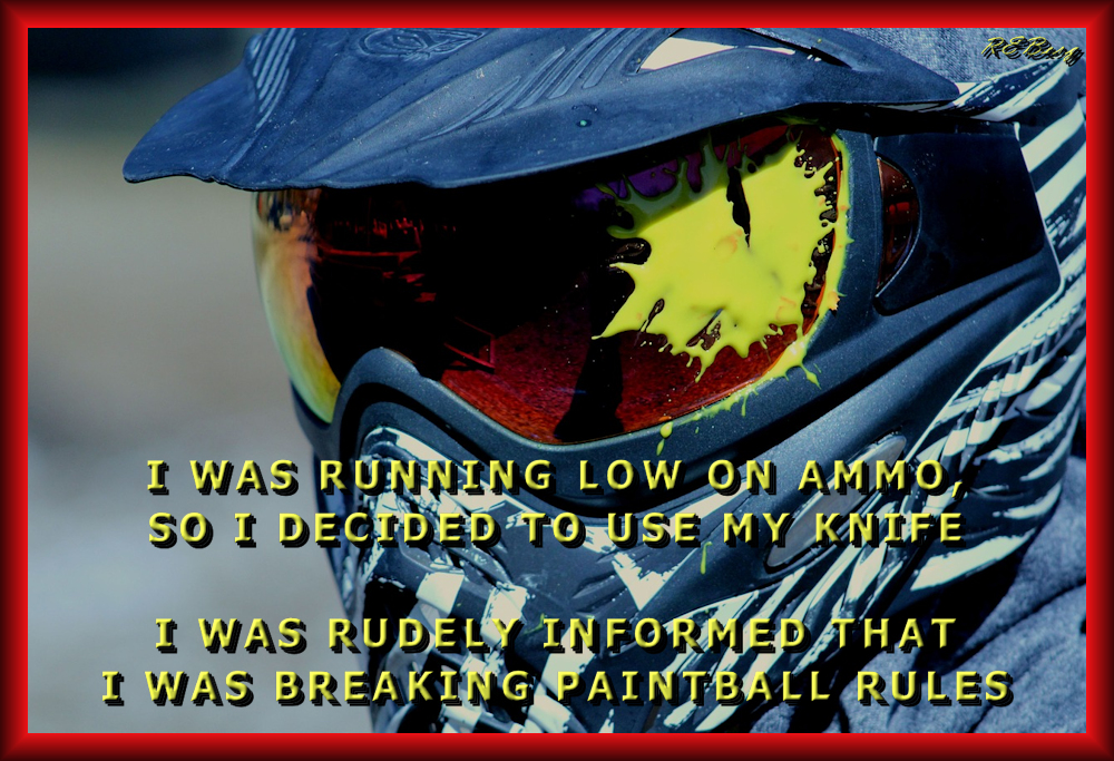 Cutting Edge Infraction Image August 24, 2023 R.E. Berg humor, Ill Legalities, Irrational Recreation, joke, Marginal Entertainment, meme ammo, break, knife, paintball, rules