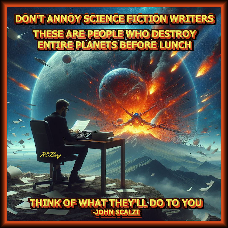Just Imagine Image May 31, 2024May 31, 2024 R.E. Berg humor, joke, meme, Quote Quotient, Random Observations, Ready Reading, Social Hostility annoy, destroy, fiction, John Scalzi, lunch, planets, science, think, writers