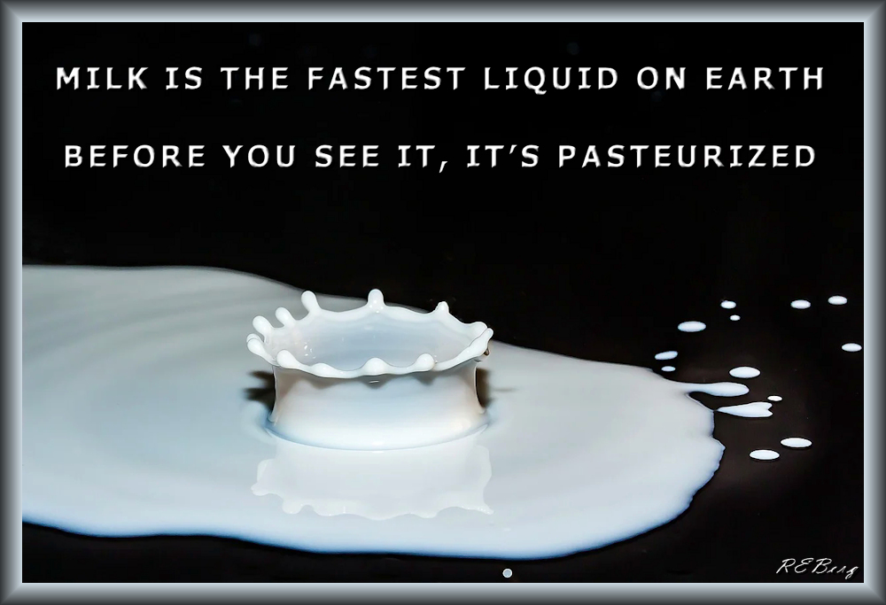 Got Speed? Image August 25, 2023 R.E. Berg Culinary Curiosities, humor, joke, meme, Punishingly Punny fastest, liquid, milk, past your eyes, pasteurized, see