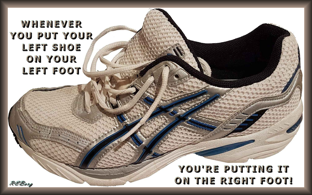 Playing Footsie Image May 10, 2023 R.E. Berg humor, joke, meme, Punishingly Punny Too, Random Observations correct, foot, left, right, shoe