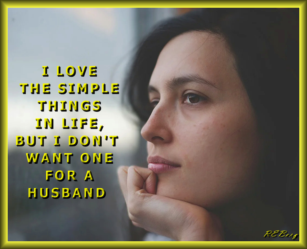 Simple Complication Image June 12, 2023 R.E. Berg humor, joke, meme, Punishingly Punny Too, Rocky Relationships, Social Hostility husband, life, love, simple, things, want, wife, woman