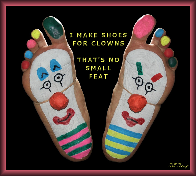 No Fear Of Defeat Image September 2, 2023 R.E. Berg humor, joke, Marginal Entertainment, meme, Punishingly Punny Too big, clowns, feat, feet, make, shoes, small