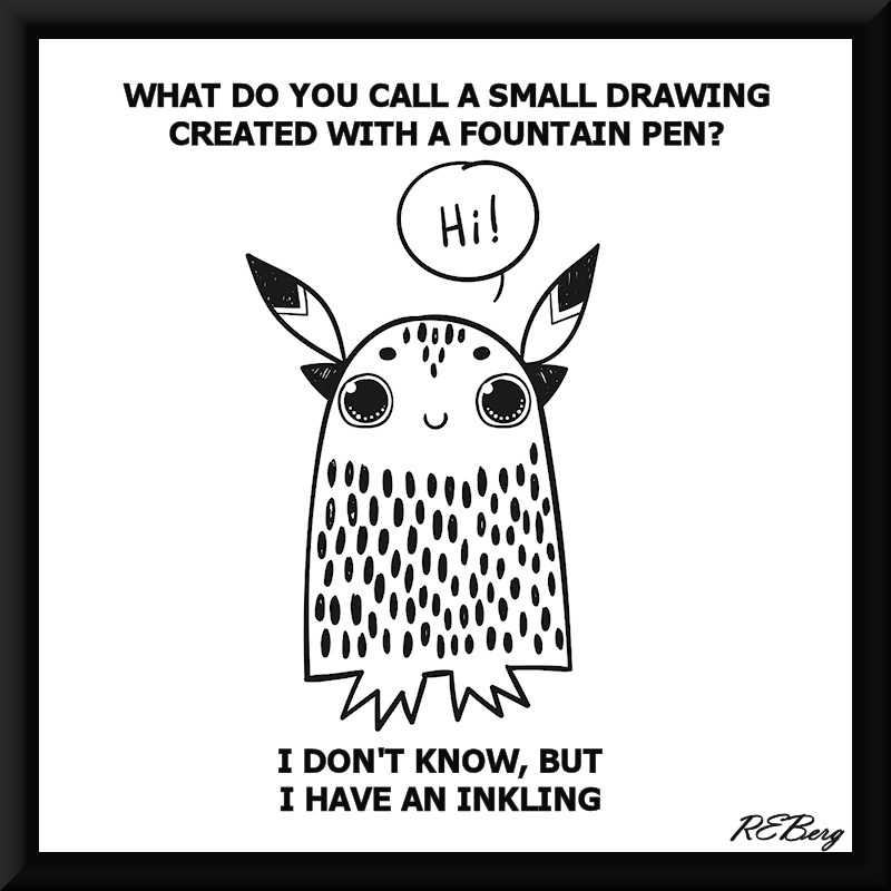 Getting The Picture Image August 10, 2023 R.E. Berg Artful Articulations, humor, joke, meme, Punishingly Punny call, created, drawing, fountain, ink;ing, know, pen, small