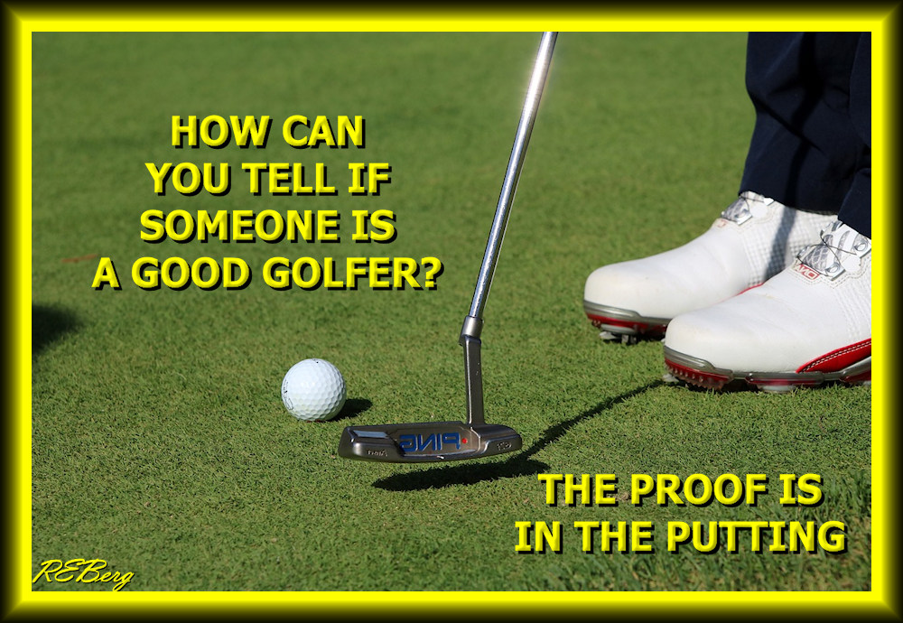 On The Green Image October 6, 2023October 6, 2023 R.E. Berg humor, Irrational Recreation, joke, Marginal Entertainment, meme, Punishingly Punny Too ball, club, golfer, good, how can you tell, in the pudding, in the putting, proof, shoes, someone