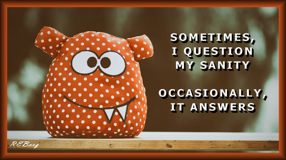 Questionable Conversation Image May 29, 2023 R.E. Berg humor, Imaginary Reality, joke, meme, Mental Gymnastics, Punishingly Punny Too, Random Observations answers, occasionally, question, sanity, sometimes