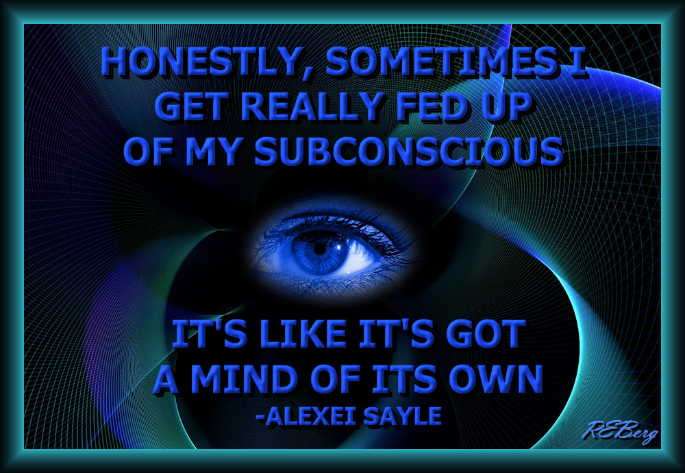 Unlikeminded Image January 17, 2024 R.E. Berg humor, joke, meme, Mental Gymnastics, Quote Quotient, Random Observations Alexei Sayle, fed, get, honestly, like, mind, own, really, sometimes, subconscious, up