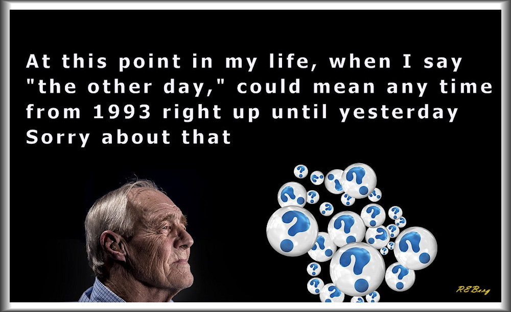 Random Recollection Image January 15, 2023 R.E. Berg Age Management, humor, joke, meme, Mental Gymnastics, That's Living memory, past, point, recall, sorry, time
