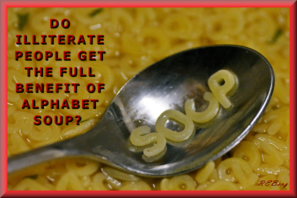 What’s That Spell? Image October 1, 2023 R.E. Berg Culinary Curiosities, humor, joke, meme, Random Observations, Ready Reading, Social Hostility alphabet, benefit, illiteracy, people, soup, spoon