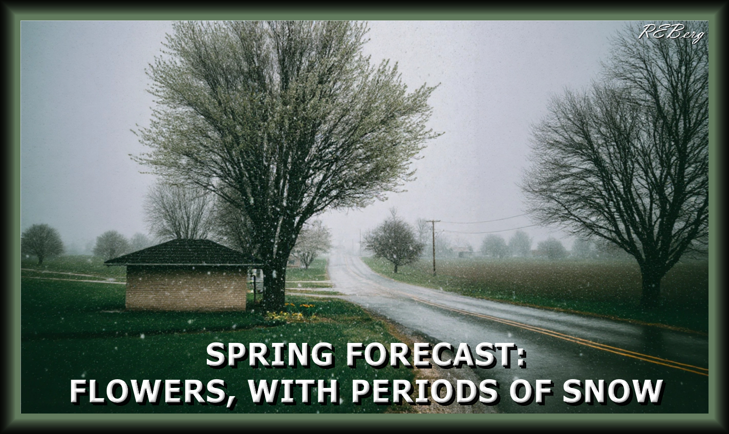Forward, March! March 12, 2026March 12, 2026 R.E. Berg humor, joke, meme, Mental Gymnastics, Random Observations, That's Living clouds, darkness, flowers, forecast, overcast, periods, road, sky, snow, spring, wet, wind