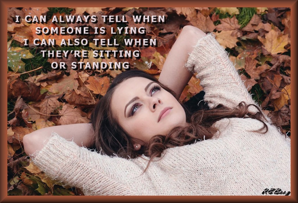 Positional Perception Image April 11, 2023April 11, 2023 R.E. Berg humor, joke, meme, Punishingly Punny Too, Random Observations, Social Hostility leaves, lying, sitting, standing, tell, woman