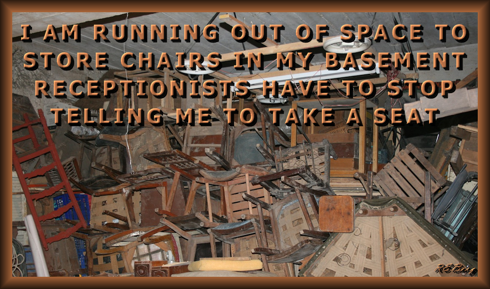 Inner Space Image April 28, 2023 R.E. Berg humor, joke, meme, Punishingly Punny basement, receptionists, room, seat, storage, take