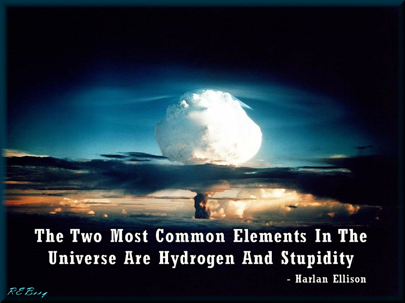 Reactive Commonality Image May 17, 2023 R.E. Berg meme, Quote Quotient, Random Observations bomb, common, elements, fatal, Harlan Ellison, hydrogen, reaction, stupidity
