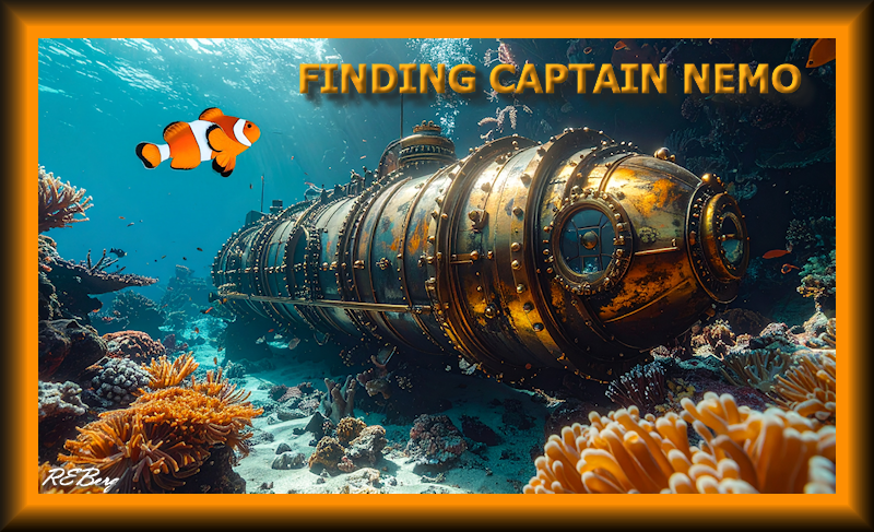 Leadership Quest Image June 8, 2025 R.E. Berg humor, Imaginary Reality, joke, Locational Logic, Marginal Entertainment, meme, Rocky Relationships, Travel Trauma captain, clownfish, coral reef, finding, hiding, Nautilus, Nemo, submarine