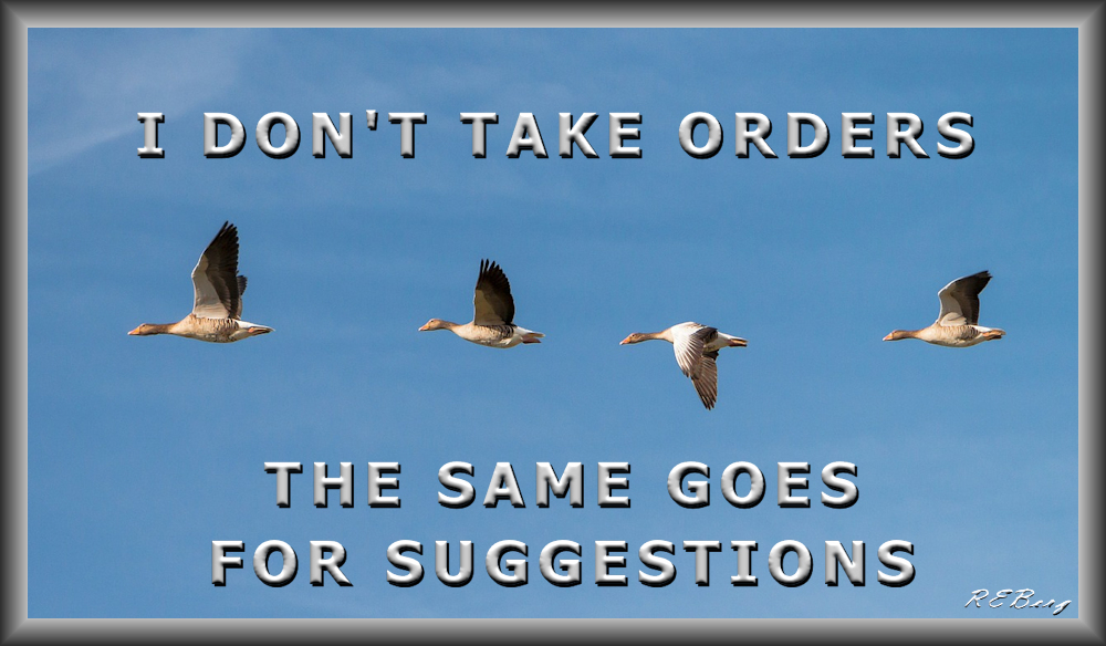 Save It! Image June 24, 2023 R.E. Berg humor, joke, meme, Occupational Oddities, Social Hostility flight, following suggestions, formation, geese, taking orders, teamwork