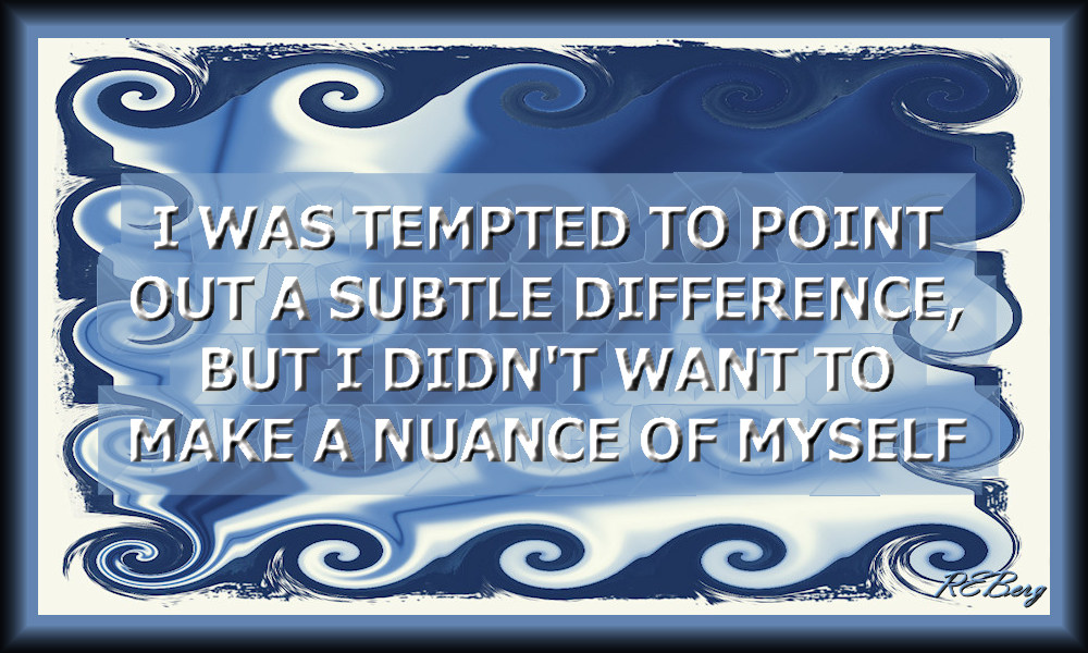 Reluctant Restraint Image April 8, 2023 R.E. Berg humor, joke, meme, Punishingly Punny Too difference, myself, nuance, nuisance, point, subtle, temptation