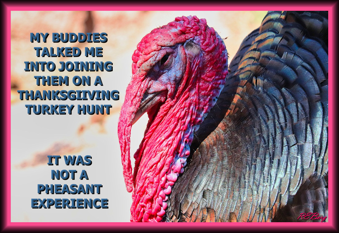 Species Specific Image November 23, 2023November 23, 2023 R.E. Berg humor, Irrational Recreation, joke, meme, Punishingly Punny Too, Special Days buddies, experience, hunt, joining, pheasant, pleasant, talked, Thanksgiving, turkey