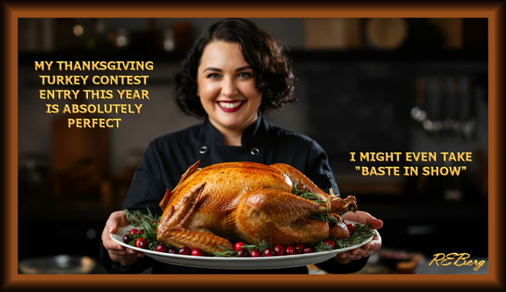 Toast Of The Roast Image November 28, 2024November 28, 2024 R.E. Berg Culinary Curiosities, humor, joke, meme, Punishingly Punny Too, Special Days absolutely perfect, baste in show, best in show, chef, contest, entry, take, Thanksgiving, turkey, woman