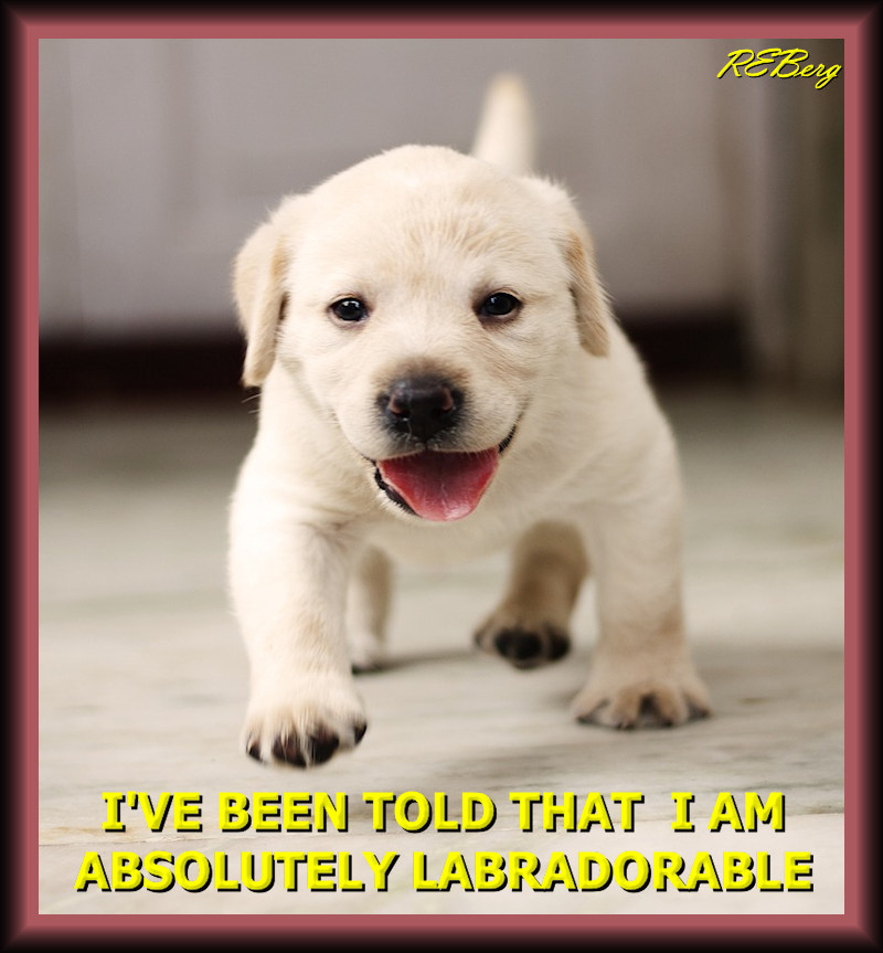 Puppy Love Image October 18, 2023 R.E. Berg Companion Critters, humor, joke, meme, Punishingly Punny Too absolutely, adorable, dog, Labrador, puppy, told